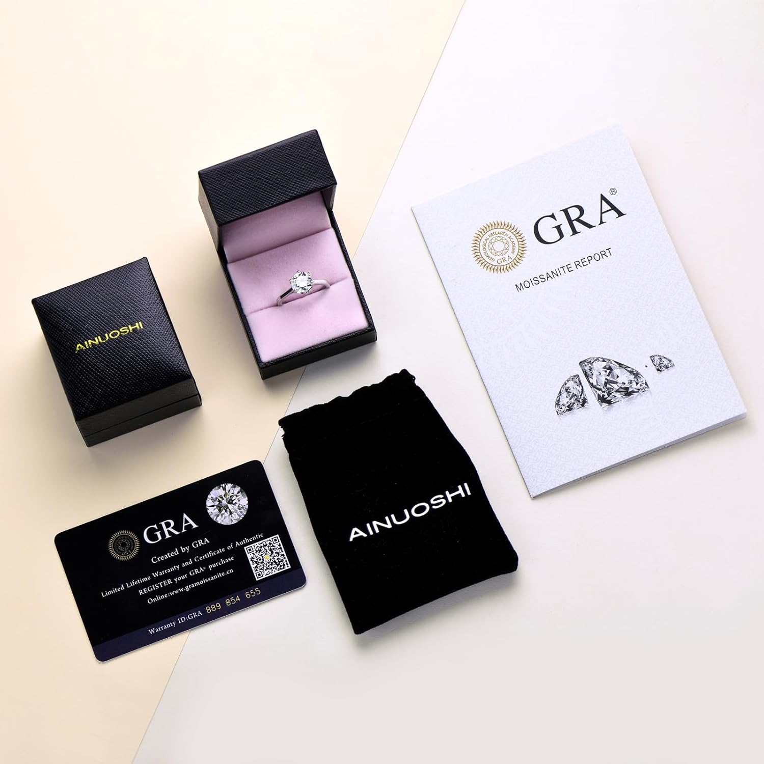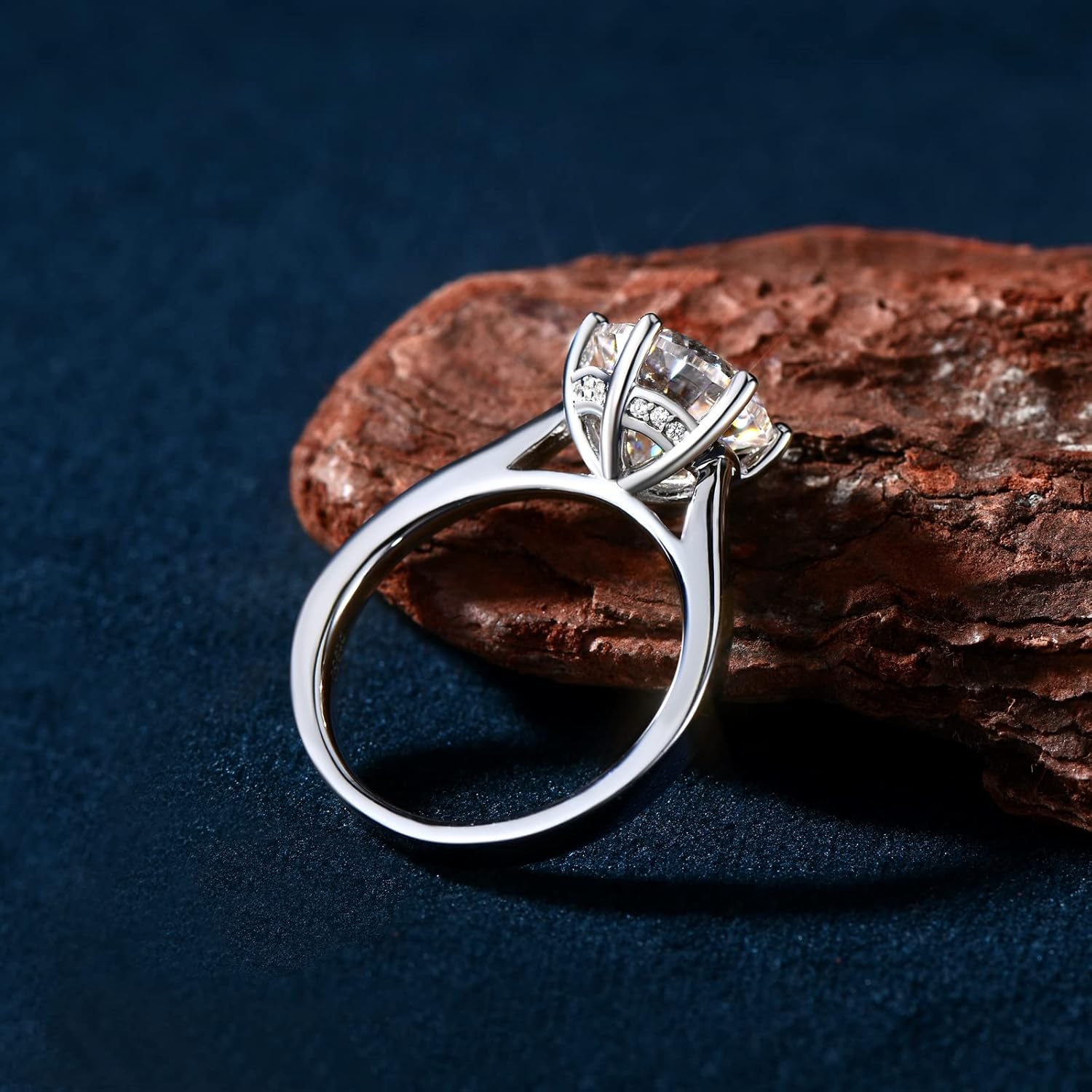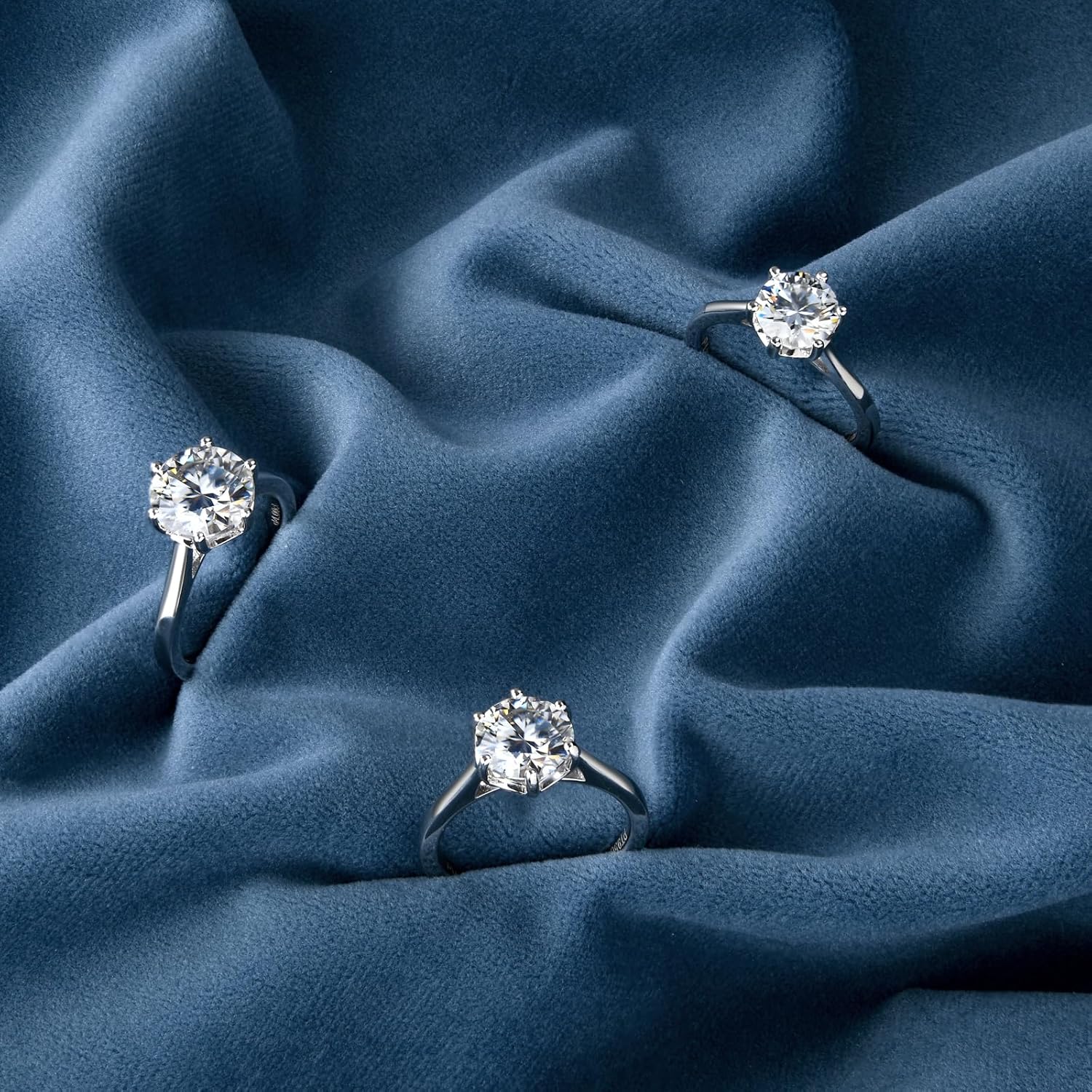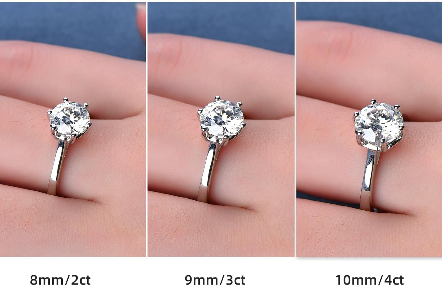 1/2/3/4 Carat Moissanite Engagement Rings for Women, 925 Sterling Silver Solitaire round Cut (10Mm) Diamond Wedding Band D-E Color Grade Gift for Wedding Anniversary